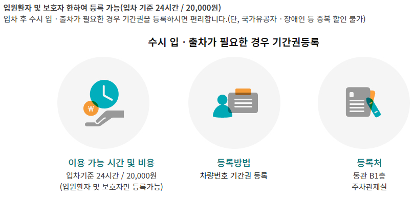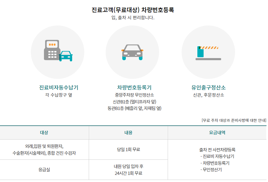 내원 당일 입차 후 24시간 1회 무료 주차 대상