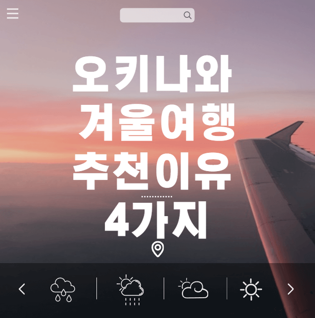 겨울에 오키나와 여행을 계획하셨다면 기억해야할 사항이 있습니다. 오키나와는 작은 섬이기 때문에 날씨가 변덕스러운 것을 꼭 기억하면서 다녀야합니다. 그래서 제가 날씨예보를 3가지나 보여드린 이유가 그것입니다. 오키나와 날씨예보로 비가 온다고 했는데 맑은 해가 떠있는 경우도 있고, 오늘은 맑은 하늘을 기대 할수 있겠다고 했는데 비가 내리고 있기도 하다고 합니다. 그래서 오키나와를 여행계획을 가지고 계신분이라면 작은 우산을 챙기시는 것이 좋습니다. 이외에 오키나와를 여행계획 이신분들에게 도움이 될만한 여행가기 전 확인 목록을 참고하시길 추천드립니다