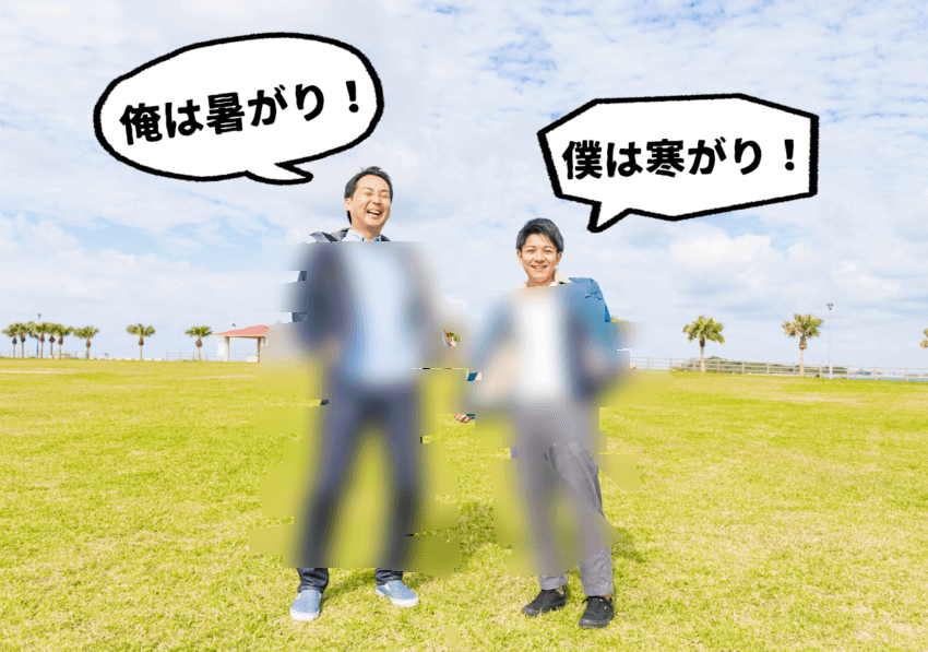 ※ 왼쪽이 더위 잘타는 사람, 오른쪽이 추위 잘타는 사람의 복장. <출처: 홀리데이 해커>