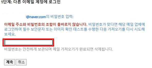 네이버 메일아이디와 비번이 틀리지 않았는데도 오류 발생시 해결 방법